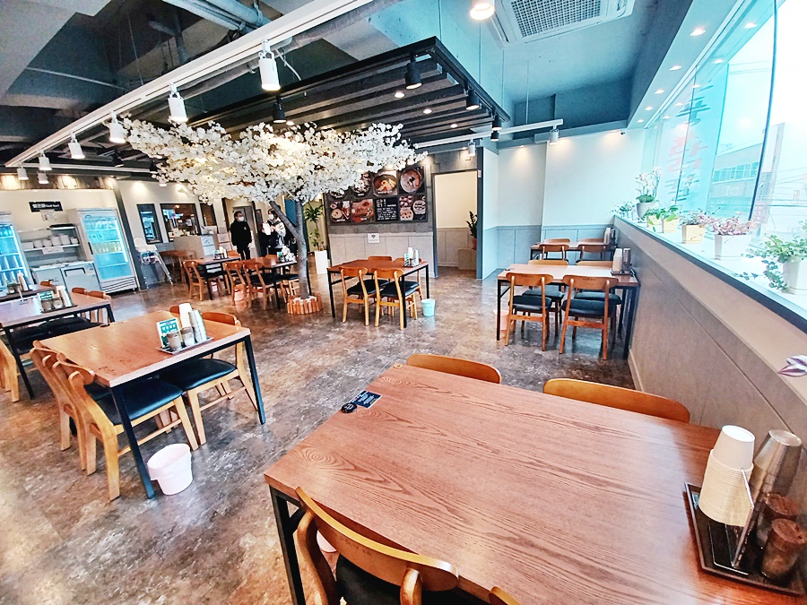 지산 범물점은 매우 광범위한 사업을 하고 있습니다. 가게에 벚꽃이 활짝 피었습니다. 매장 분위기가 굉장히 깔끔하고 예쁩니다. 혼자 와서 먹기에도 좋아요. 여럿이서 와서 먹기에 좋습니다. 전반적으로 위생에 신경을 많이 쓰는 것 같아요. 손님들은 이렇게 깨끗한 식당을 좋아할 것입니다.